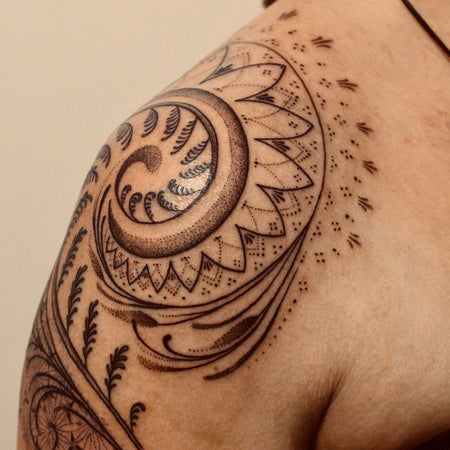 At the heart of Tattoos & Tranquility is our resident tattoo artist, Lainy. Lainy is a versatile and thoughtful artist who enjoys fineline and ornamental work, and specialises in blackwork and traditional tattooing, both in black and colour. Her approach is creative, considered and deeply client-focused, offering both custom designs created just for you and a selection of pre-drawn pieces.